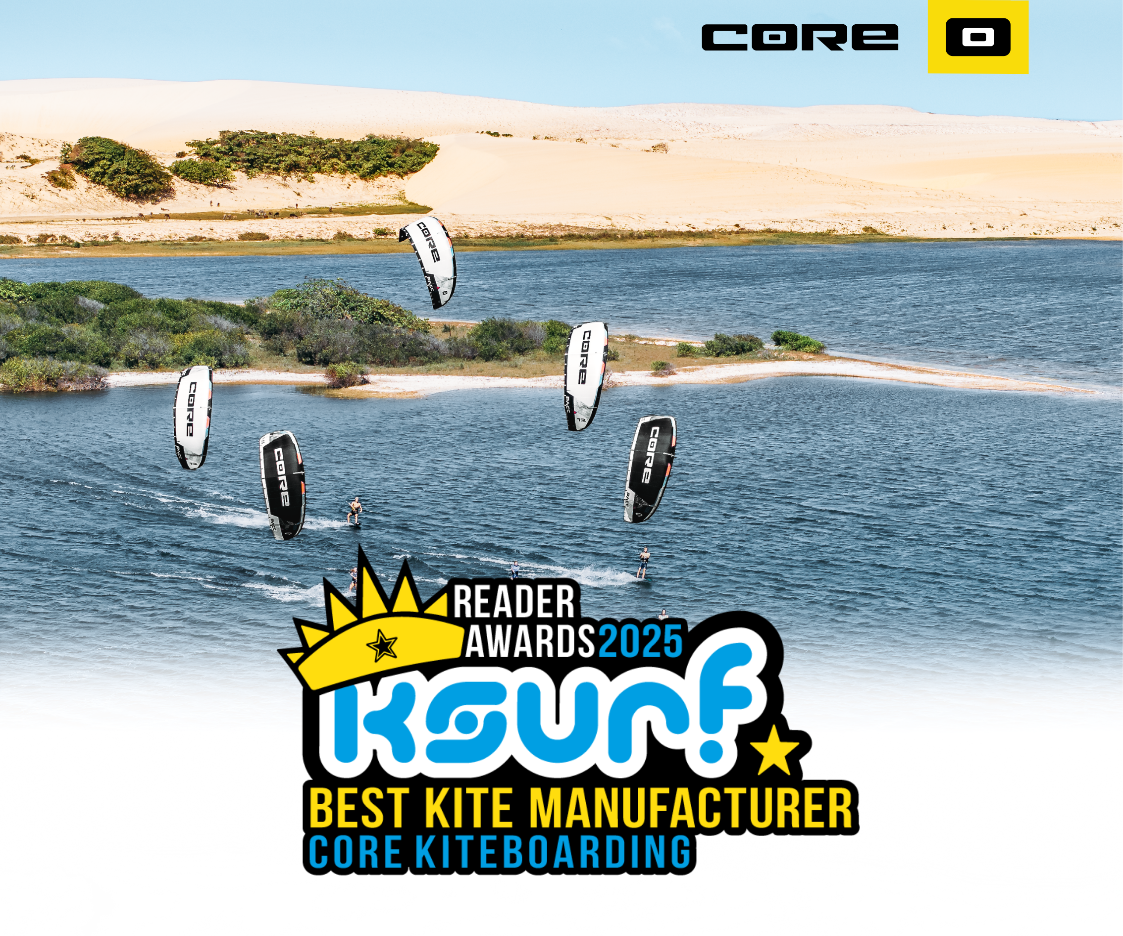 Zum dritten Mal in Folge wurde CORE von der internationalen Kite-Community zum besten Kite-Hersteller 2025 gewählt.